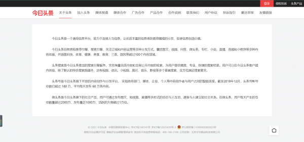 “你關(guān)心的,才是頭條”是今日頭條平臺的廣告語,今日頭條平臺是張一鳴先生于2012你那推出的一款個性化推薦引擎軟件,它能夠為平臺的用戶提供最有價值的各種信息。如圖所示是進同日頭條官網(wǎng)對自己平臺介紹的部分內(nèi)容: