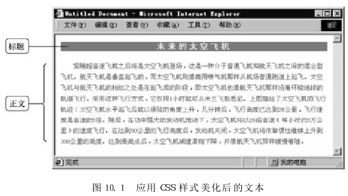應(yīng)用css樣式分別對標(biāo)題及正文進(jìn)行文本格式化,瀏覽效果如圖所示。