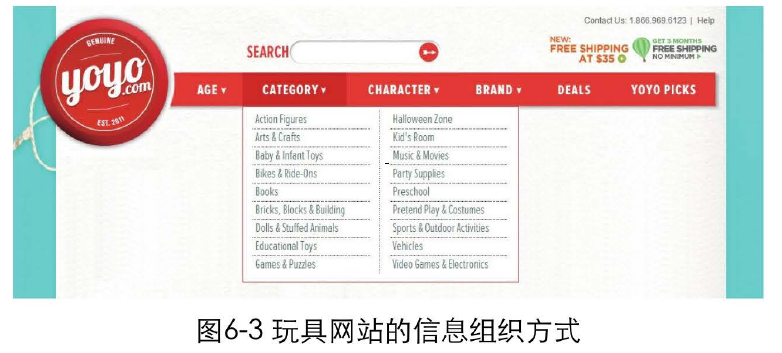 比如,一個玩具網(wǎng)站可以從適用年齡、玩具類別、特點、品牌幾個方面,對玩具進(jìn)行組織分類,如圖6-3所示。