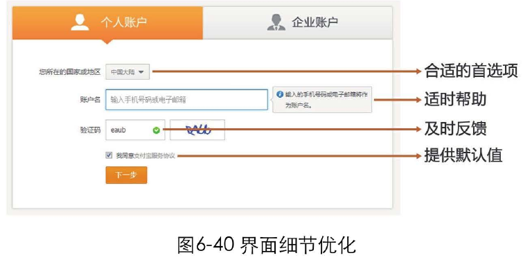 提供合適的首選項、適時幫助、及時反饋、提供合理的默認值,等等,這些細節(jié)的優(yōu)化,可以幫助用戶降低出錯幾率,使他們能夠更快、更順暢地完成任務(wù),如圖6-40所示。