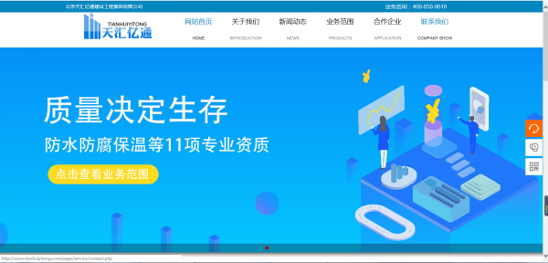 海洋網(wǎng)絡(luò)從2019年開始與北京天匯億通建設(shè)工程集團(tuán)有限公司簽約網(wǎng)站建設(shè),幫助北京天匯億通建設(shè)工程集團(tuán)有限公司網(wǎng)站設(shè)計及開發(fā)網(wǎng)站多次網(wǎng)站平臺,此項目為北京天匯億通建設(shè)工程集團(tuán)有限公司新版官方網(wǎng)站。