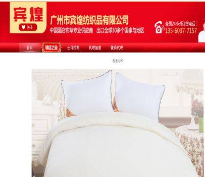 我司在與廣州市賓煌紡織品有限公司合作中;對(duì)該公司所經(jīng)營的床上用品這個(gè)行業(yè)的網(wǎng)站建設(shè)項(xiàng)目積累著豐富經(jīng)驗(yàn);同時(shí)在該行業(yè)的網(wǎng)站建設(shè)、網(wǎng)絡(luò)營銷等多元化的床上用品領(lǐng)域中也有很多成功的案例;但愿通過我們的合作,能夠幫助到合作伙伴們?cè)诰W(wǎng)絡(luò)營銷路上平安!順利!發(fā)展!