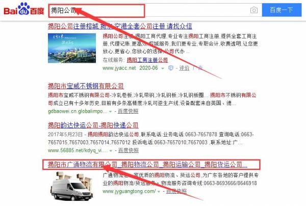 揭陽市廣*物流有限公司與我司做快速排名項目