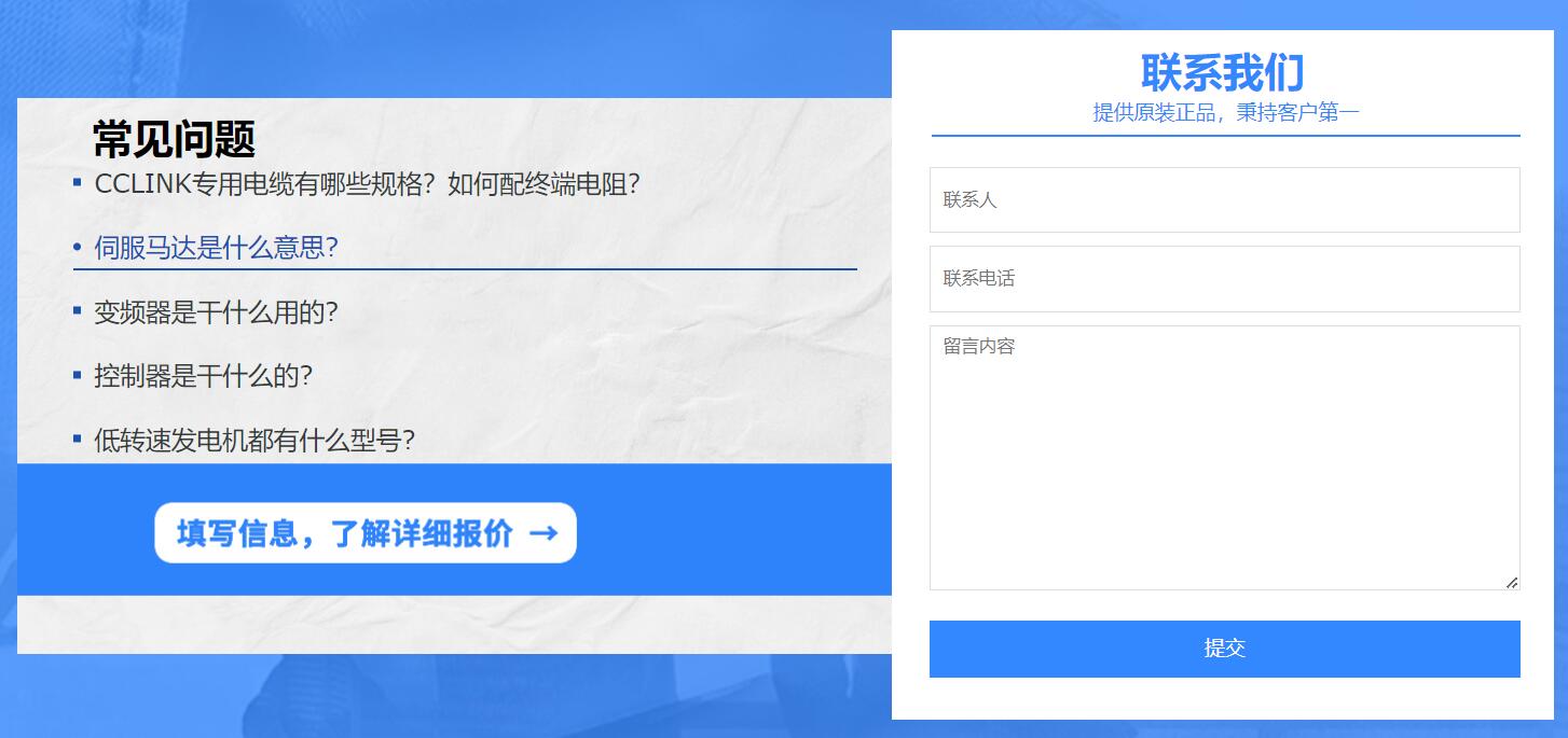 公司堅(jiān)持只為客戶(hù)提供原裝正品,秉持客戶(hù)第一,服務(wù)與價(jià)格并重的服務(wù)理念。公司銷(xiāo)售員從業(yè)三菱多年,能以最快速度滿(mǎn)足用戶(hù)對(duì)三菱產(chǎn)品的各種需求,為用戶(hù)進(jìn)行最佳的技術(shù)支持,售后服務(wù)。已成為珠三角地區(qū)以及國(guó)內(nèi)多家大型機(jī)械制造企業(yè)的定點(diǎn)供應(yīng)商網(wǎng)站設(shè)計(jì)。