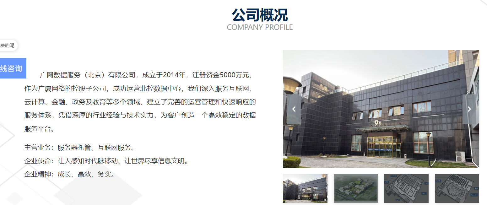 廣網(wǎng)數(shù)據(jù)服務(wù)(北京)有限公司,成立于2014年,注冊資金5000萬元,作為廣廈網(wǎng)絡(luò)的控股子公司,成功運營北控數(shù)據(jù)中心,我們深入服務(wù)互聯(lián)網(wǎng)、云計算、金融、政務(wù)及教育等多個領(lǐng)域,建立了完善的運營管理和快速響應(yīng)的服務(wù)體系,憑借深厚的行業(yè)經(jīng)驗與技術(shù)實力,為客戶創(chuàng)造一個高效穩(wěn)定的數(shù)據(jù)服務(wù)平臺。