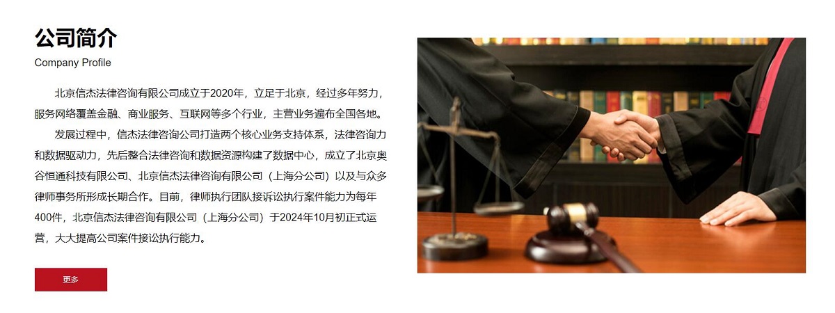 北京奧谷恒通科技有限公司主要服務(wù)北京信杰法律咨詢有限公司與托管律師事務(wù)所,提供數(shù)據(jù)查詢評估服務(wù)。