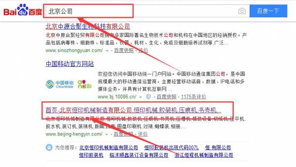 北京恒印機械制造有限公司與我司做快速排名項目