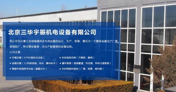 北京三華宇振機電設(shè)備有限公司為從事工業(yè)領(lǐng)域通用及專用設(shè)備的設(shè)計、生產(chǎn)、安裝、售后為一個整體設(shè)備生產(chǎn)廠家。 領(lǐng)域較廣,除主要設(shè)備類,也生產(chǎn)配套類的設(shè)備設(shè)施。