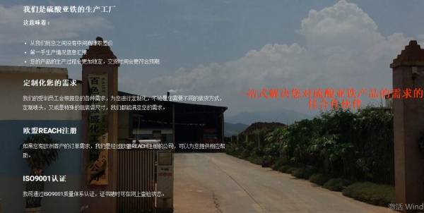 百色市*盛化工有限公司位于廣西壯族自治區(qū)百色市,占地面積為16畝,是一家生產(chǎn)硫酸亞鐵的工廠。我們的主打產(chǎn)品是七水硫酸亞鐵和一水硫酸亞鐵。除此之外,我們還供應(yīng)硫酸鋅,硫酸鎂,硫酸錳等產(chǎn)品。本企業(yè)通過(guò)ISO9001:2008認(rèn)證,從事硫酸亞鐵生產(chǎn)有20多年的經(jīng)驗(yàn)。從我們工廠到欽州港或防城港的距離僅為350公里。廣西盛產(chǎn)硫酸亞鐵,這使得我們的產(chǎn)品更具競(jìng)爭(zhēng)力。