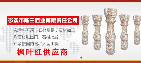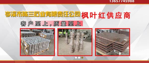 公司專業(yè)生產(chǎn)及開(kāi)采廣西楓葉紅、廣西三堡紅、廣西浪花白、廣西海棠紅、廣西粉紅麻、廣西芝麻黑等優(yōu)質(zhì)花崗巖,擁有多名優(yōu)秀專業(yè)技術(shù)人員,是專業(yè)的楓葉紅供應(yīng)商。主營(yíng):荒料,高檔別墅,星級(jí)酒店,歐式工程石材,外墻干擋板,光面,荔枝面,火燒面。