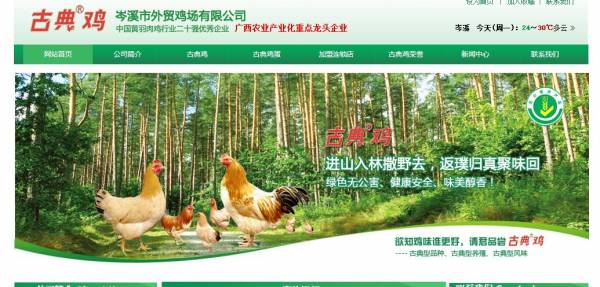 岑溪市外*雞場有限公司是一家從事古典雞研究和產(chǎn)業(yè)化經(jīng)營并通過ISO9001國際質(zhì)量管理體系認(rèn)證的專業(yè)養(yǎng)殖公司。是廣西區(qū)農(nóng)業(yè)產(chǎn)業(yè)化重點(diǎn)龍頭企業(yè),是中國黃羽肉雞行業(yè)二十強(qiáng)優(yōu)秀企業(yè)。