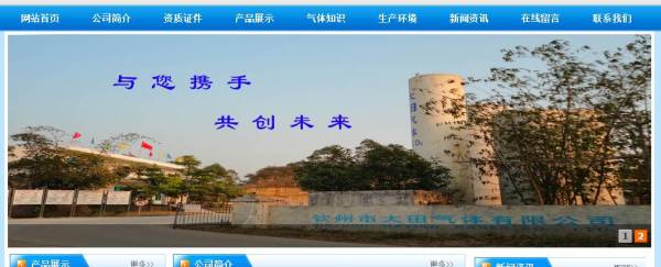 欽州市大*氣體有限公司網(wǎng)站建設展示型案例作品