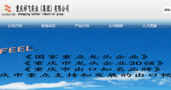 重慶祥飛實(shí)業(yè)(集團(tuán))有限公司始創(chuàng)于公元1995年,經(jīng)過20多年來的艱苦創(chuàng)業(yè),現(xiàn)已成為重慶市繭、絲、綢產(chǎn)業(yè)中知名的民營股份制企業(yè)。集團(tuán)集貿(mào)、工、農(nóng)為一體,擁有員工300余人。旗下?lián)碛?家全資公司、2家參股公司、1家獨(dú)資越南綢廠、1家烏茲別克參股絲綢工廠和1家印度參股絲綢生產(chǎn)廠。公司在兩巫一奉地區(qū)(奉節(jié)、巫溪、巫山)發(fā)展的20萬畝高海拔優(yōu)質(zhì)蠶?;?,已成為重慶市蠶桑產(chǎn)業(yè)優(yōu)質(zhì)蠶繭主產(chǎn)區(qū),所產(chǎn)優(yōu)質(zhì)生態(tài)蠶繭在行業(yè)名聲顯赫,并且蠶桑產(chǎn)業(yè)成為當(dāng)?shù)剞r(nóng)民主要的增收渠道,同時(shí)也在其他多個(gè)貧困區(qū)縣起到了脫貧致富的支柱性作用。集團(tuán)所屬的“祥飛(SUNFEEL)”牌綢緞已經(jīng)在印度、尼泊爾、新加坡、孟加拉等南亞及東南亞主要傳統(tǒng)絲綢消費(fèi)國享有盛譽(yù),出口數(shù)量連續(xù)多年穩(wěn)居西南地區(qū)同行業(yè)前列。集團(tuán)先后多次被重慶市政府評為“重慶市重點(diǎn)支持和發(fā)展的出口暢銷品牌”、“重慶市農(nóng)業(yè)產(chǎn)業(yè)化龍頭企業(yè)30強(qiáng)”、“重慶市名牌產(chǎn)品”、“重慶市知名出口品牌”等榮譽(yù)稱號,2008年曾被國家農(nóng)業(yè)部評為“國家級龍頭企業(yè)”。