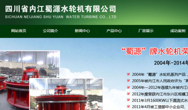 四川省內(nèi)江蜀源水輪機(jī)有限公司是原四川省國營內(nèi)江水輪機(jī)廠破產(chǎn)后,于2001年8月重組成立,是集生產(chǎn)、銷售為一體的民營經(jīng)濟(jì)實(shí)體。公司主要制造銷售水輪機(jī)及配套設(shè)備,造紙機(jī)械,礦山機(jī)械,食品機(jī)械,包裝機(jī)械。公司與四川省西華大學(xué)(原四川工業(yè)學(xué)院)流體機(jī)械研究所建立了長期合作關(guān)系,屬中國電工工業(yè)協(xié)會(huì)會(huì)員、四川省中小型水輪發(fā)電機(jī)組定點(diǎn)生產(chǎn)企業(yè)、內(nèi)江市東興區(qū)工業(yè)規(guī)模企業(yè)。公司現(xiàn)有職工100余人,解決下崗失業(yè)人員68人,有工程技術(shù)人員46人,大部分生產(chǎn)工人都是具有專門特長的技工。公司2004年“蜀源”水輪機(jī)系列產(chǎn)品,榮獲“中國知名發(fā)電機(jī)組十佳品牌;2005年被內(nèi)江市人民政府評(píng)為“再就業(yè)先進(jìn)企業(yè)”;2004年—2012年連續(xù)九年被內(nèi)江市東興區(qū)工商局評(píng)為“守合同重信用”企業(yè);2012年度榮獲內(nèi)江市東興區(qū)規(guī)模工業(yè)企業(yè)目標(biāo)考核“二等獎(jiǎng)”,2011年3月1600KW以下混流式水輪機(jī)被中國電器工業(yè)協(xié)會(huì)評(píng)為質(zhì)量可信產(chǎn)品;2011年4月被工信部中小企業(yè)司、四川省經(jīng)信委授予“國家中小企業(yè)扶持項(xiàng)目實(shí)施單位” ;2011年4月被四川省經(jīng)濟(jì)和信息化委員會(huì)授予—四川省“成長型“中小企業(yè);2014年4月16日獲得國家知識(shí)產(chǎn)權(quán)局授予的三項(xiàng)專利權(quán):新型軸流式水輪機(jī)、新型貫流式水輪機(jī)、新型沖擊式水輪機(jī)。