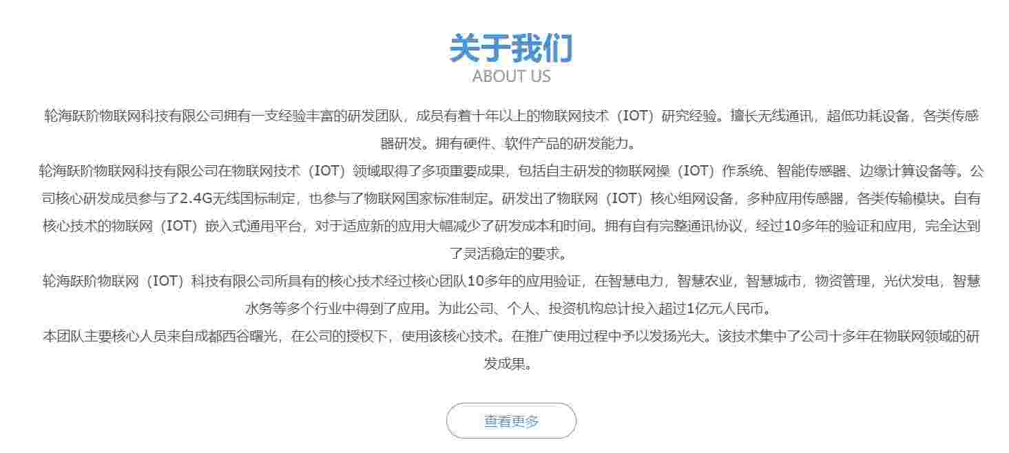 輪海躍階物聯(lián)網(wǎng)(IOT)科技有限公司所具有的核心技術(shù)經(jīng)過核心團(tuán)隊(duì)10多年的應(yīng)用驗(yàn)證,在智慧電力,智慧農(nóng)業(yè),智慧城市,物資管理,光伏發(fā)電,智慧水務(wù)等多個行業(yè)中得到了應(yīng)用。為此公司、個人、投資機(jī)構(gòu)總計投入超過1億元人民幣。