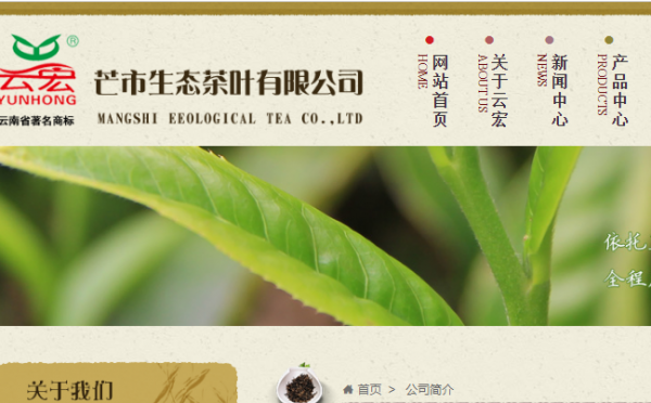 *市生態(tài)茶葉有限公司是一家集茶葉種植、加工、銷售為一體的農(nóng)業(yè)產(chǎn)業(yè)化省級重點龍頭企業(yè)。公司通過植物源性食品原料種植備案基地16515畝,按照出口標準化建設(shè)的花園式茶葉精制加工廠一座,是德宏州茶葉行業(yè)中最先取得出口資格的企業(yè),同時也是德宏州檢驗檢疫局轄區(qū)內(nèi)第一家取得貨物直通放行的企業(yè)。公司在國內(nèi)各大城市建立了銷售網(wǎng)點,同時產(chǎn)品還遠銷歐美、東南亞等國家。公司現(xiàn)擁有固定資產(chǎn)1.2億元,年加工經(jīng)營各類茶葉5000多噸。公司為提升產(chǎn)品質(zhì)量引入綠色食品管理體系、HACCP國際食品安全體系和ISO9001國際質(zhì)量管理體系,對原料和生產(chǎn)過程進行全程危害控制管理。公司主要產(chǎn)品有“云宏”牌系列普洱茶、紅茶、綠茶、名優(yōu)茶等150多個品種供消費者選購。