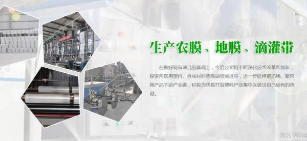 靖邊縣華*塑業(yè)有限公司成立于2015年7月,注冊(cè)資金1200萬(wàn)元,是一家以生產(chǎn)農(nóng)膜、地膜、滴灌帶為主要產(chǎn)品的企業(yè),并利用靖邊能化園區(qū)生產(chǎn)的聚乙烯作為主要原材料,延長(zhǎng)了產(chǎn)業(yè)鏈,實(shí)現(xiàn)產(chǎn)品就地轉(zhuǎn)化。我公司是一家塑料加工企業(yè),公司的建成極大地填補(bǔ)了陜北地區(qū)塑料生產(chǎn)空白,為促進(jìn)陜北農(nóng)業(yè)發(fā)展起到了積極推動(dòng)的作用。