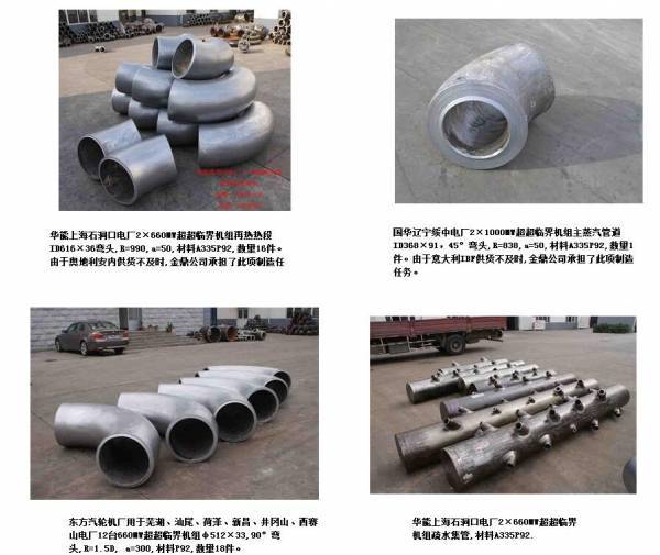天津金*管道有限公司是生產(chǎn)經(jīng)營(yíng)工業(yè)管道配件及管道系統(tǒng)總承包的綜合公司,制造產(chǎn)品主要有高、中、低壓三通、彎頭、彎管、異徑管、封頭、接管座、法蘭等,擁有大量的配管及管道系統(tǒng)總承包業(yè)績(jī)。生產(chǎn)能力強(qiáng),規(guī)格齊全,可滿足廣大客戶需求。本公司多年來與國(guó)內(nèi)行業(yè)權(quán)威機(jī)構(gòu)合作,共同研究開發(fā)了電站管制大口徑厚壁三通和中頻熱推彎頭;獨(dú)創(chuàng)了隧道式熱推彎頭;A335P91和15NiCuMoNb5-6-4材料管件;鋼X70級(jí)熱壓三通; 1000MW超超機(jī)組A335P92材料管件;取得了ISO質(zhì)量、環(huán)境認(rèn)證;OHSAS職業(yè)健康安全認(rèn)證;取得了國(guó)家質(zhì)量監(jiān)督檢驗(yàn)檢疫總局頒發(fā)的“特種設(shè)備壓力管道元件制造許可證”; 北京電能產(chǎn)品認(rèn)證中心PCCC全套超超臨界機(jī)組產(chǎn)品認(rèn)證;及多次ASME“PP”認(rèn)證;承攬了中核秦山二期、中廣核多數(shù)核電工程非核級(jí)管件;近20臺(tái)超超臨界機(jī)組全部成套管件;近10臺(tái)雙再熱超超臨界機(jī)組管件;等等高精尖機(jī)組的制造任務(wù)。二十幾年來科研開發(fā)與電力機(jī)組升級(jí)并行,科技成果始終走在同行業(yè)前列,各類新產(chǎn)品十余次填補(bǔ)國(guó)內(nèi)空白或超過國(guó)際先進(jìn)水平, 十幾次榮獲國(guó)家重點(diǎn)新產(chǎn)品獎(jiǎng)、中國(guó)電力科學(xué)技術(shù)二等獎(jiǎng)、天津市科技進(jìn)步獎(jiǎng)。
