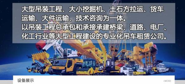 新疆哈密市貴*工程機(jī)械租賃有限責(zé)任公司自2008年從事吊裝起重(吊車(chē)租賃)運(yùn)輸行業(yè),與2019年正式成立公司。本公司是集大型吊裝工程,大件運(yùn)輸,技術(shù)咨詢(xún)?yōu)橐惑w。以吊裝工程總承包和承接承建橋梁、道路、電廠、化工行業(yè)等大型工程建設(shè)的專(zhuān)業(yè)化吊車(chē)租賃公司。在做好專(zhuān)業(yè)化的基礎(chǔ)上,逐步向多元化發(fā)展,開(kāi)創(chuàng)規(guī)?;?,集團(tuán)化的發(fā)展道路。