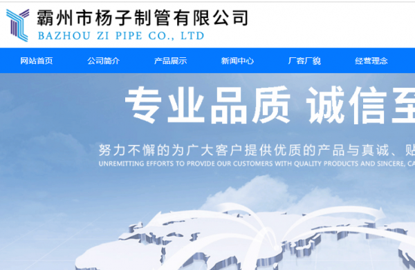 霸州市*子制管有限公司選用我司企業(yè)寵物用品網(wǎng)站案例,其網(wǎng)站建設(shè)的特點(diǎn)是制造加工鋼管、帶鋼,貨物進(jìn)出口。用很合適的展示方式、展示效果、站點(diǎn)框架,把客戶及其用戶很關(guān)心的問(wèn)題突出表現(xiàn);并以簡(jiǎn)潔明朗的設(shè)計(jì)風(fēng)格,清晰展現(xiàn)公司水平實(shí)力,確保一秒抓住目標(biāo)用戶眼球,給用戶留下良好的第一印象。霸州市*子制管有限公司成立于2002年,是經(jīng)霸州市場(chǎng)監(jiān)督管理局審核的有資質(zhì)的公司,其統(tǒng)一社會(huì)信用代碼:91131**1740193290P。公司地址:霸州市東段鄉(xiāng)馮柳村。