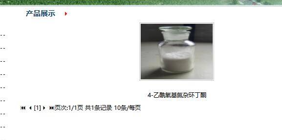 公司現(xiàn)在主要研發(fā)4AA產(chǎn)品(4-乙酰氧基氮雜環(huán)丁酮)用途:重要的精細(xì)有機(jī)化工中間體,廣泛應(yīng)用于醫(yī)藥、化學(xué)工業(yè)等領(lǐng)域。是抗生素培南類母核,用于合成美羅培南、比阿培南、厄他培南、泰比培南法羅培南等,隸屬系列產(chǎn)品之一。公司實(shí)力雄厚技術(shù)先進(jìn),產(chǎn)品市場(chǎng)前景廣闊,致力于成為化工行業(yè)的領(lǐng)軍企業(yè)。