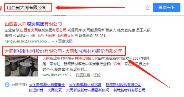 大同新成新材料股份有限公司跟本公司簽訂網站推廣合同