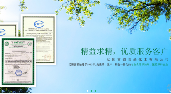 遼陽富*食品化工有限公司地處遼東半東島中部,南接大邊,北鄰沈陽。全國第一條高速公路貫穿南北,距港口城市大連僅有300公里,有著相當優(yōu)越的地理條件。遼陽富強始建于1992年,是集研、生產(chǎn)、銷售一體化的專業(yè)食品添加劑、醫(yī)藥原料企業(yè),同時,也是國內(nèi)唯一有能力可以生產(chǎn)葡萄糖酸鋅、葡萄糖酸亞鐵、葡萄糖酸鎂、葡萄糖酸錳、葡萄糖酸銅、葡萄糖酸鉀、葡萄糖酸鈣及葡萄糖酸鈉。遼陽富強秉承“產(chǎn)品質(zhì)量第一、信譽第一、服務第一”的宗旨。為了保證產(chǎn)品質(zhì)量,遼陽富強具有實驗室、菌檢室及開發(fā)部,嚴格按照《美國藥典》(USP)、《英國藥典》(BP)、《美國食品化工典》(FCC)版的標準進行生產(chǎn)與檢驗。遼陽富強的產(chǎn)品全部遠銷歐美、東南亞等國家和地區(qū)。高質(zhì)量的產(chǎn)品,周到的服務得到了國內(nèi)外客戶的認可和好評,獲得了他們的信賴,建立了長期合作的業(yè)務關系。因此,遼陽富強竭誠歡迎國內(nèi)外客戶前來洽談業(yè)務,進行合作,共同發(fā)展。
