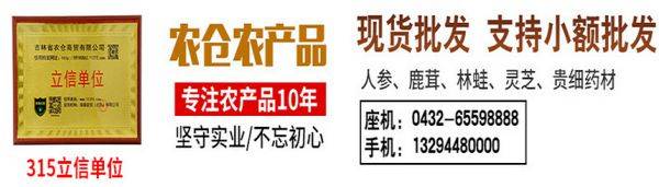 吉林省農(nóng)倉商貿(mào)有限公司經(jīng)銷批發(fā)的人參、鹿茸、雪蛤、靈芝等農(nóng)產(chǎn)品、靈芝、人參等農(nóng)產(chǎn)品暢銷消費(fèi)者市場,在消費(fèi)者當(dāng)中享有較高的地位,公司與多家零售商和代理商建立了長期穩(wěn)定的合作關(guān)系。吉林省農(nóng)倉商貿(mào)有限公司經(jīng)銷的人參、鹿茸、雪蛤、靈芝等農(nóng)產(chǎn)品、靈芝、人參等農(nóng)產(chǎn)品品種齊全、價(jià)格合理。吉林省農(nóng)倉商貿(mào)有限公司實(shí)力雄厚,重信用、守合同、保證產(chǎn)品質(zhì)量,以多品種經(jīng)營特色和薄利多銷的原則,贏得了廣大客戶的信任。公司主要經(jīng)營:預(yù)包裝食品經(jīng)銷;大米、玉米、雜糧、山野菜、干果、菌類、人參、鹿茸、林蛙、土特產(chǎn)品經(jīng)銷;茶葉、花茶經(jīng)銷;農(nóng)副產(chǎn)品收購。