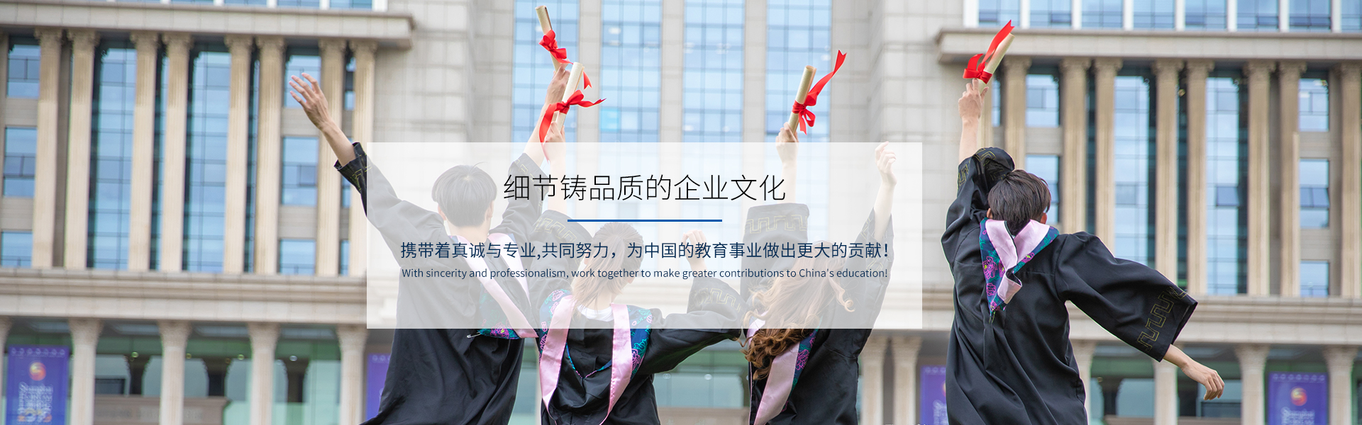 公司全體成員圍繞著:嚴(yán)謹(jǐn)、負(fù)責(zé)、規(guī)范、奉獻(xiàn)的企業(yè)精神,秉承:教育無(wú)小事,細(xì)節(jié)鑄品質(zhì)的企業(yè)文化,攜帶著真誠(chéng)與專業(yè),共同努力,為中國(guó)的教育事業(yè)做出更大的貢獻(xiàn)!
