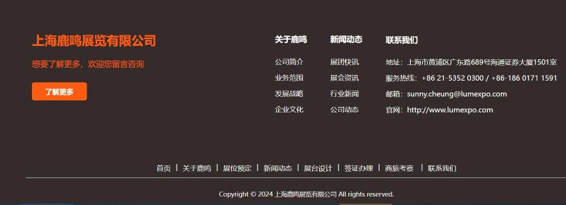 鹿鳴展覽是一家專業(yè)從事國際展覽的涉外服務機構,公司以會展業(yè)務為核心,業(yè)務涵蓋:展位預定、展臺設計搭建、商旅考察、簽證辦理、商協(xié)會對接等一站式服務。 鹿鳴展覽每年在全球參與組織近百場國際性專業(yè)展會,涉及零售業(yè)、包裝、光伏太陽能、儲能、電池、充電樁、可再生能源等領域。公司銷售團隊擁有行業(yè)十年以上的服務經(jīng)驗,以“專業(yè)、專注、負責任”的理念服務企業(yè),獲得了一眾行業(yè)巨頭、上市公司的好評和認可。 鹿鳴展覽,專業(yè)助力企業(yè)拓展全球市場!