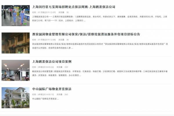 上海鵬發(fā)保潔服務(wù)有限公司選用我司企業(yè)家政保潔行業(yè)的網(wǎng)站優(yōu)化產(chǎn)品,其SEO關(guān)鍵詞有 上海保潔公司,上海徐匯保潔公司,靜安保潔公司,普陀保潔公司,閔行保潔公司,寶山保潔公司,嘉定保潔公司,浦東保潔公司,松江保潔公司,青浦保潔公司,奉賢保潔公司,上海外墻清洗,上海沙發(fā)清洗,水箱清洗。其特點(diǎn)是用很合適的展示方式、展示效果、站點(diǎn)框架,把客戶及其用戶很關(guān)心的問題突出表現(xiàn);并以簡(jiǎn)潔明朗的設(shè)計(jì)風(fēng)格,清晰展現(xiàn)公司水平實(shí)力,確保一秒抓住目標(biāo)用戶眼球,給用戶留下良好的第一印象。上海鵬發(fā)保潔服務(wù)有限公司成立于2011年,是經(jīng)閔行區(qū)市場(chǎng)監(jiān)督管理局審核的有資質(zhì)的公司,其統(tǒng)一社會(huì)信用代碼: 913101125791289185。公司地址:上海漕寶路2888弄66號(hào)。