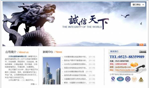 江蘇遠(yuǎn)*機(jī)械有限公司選用我司企業(yè)機(jī)械設(shè)備行業(yè)的網(wǎng)站優(yōu)化產(chǎn)品,其SEO關(guān)鍵詞有 冷卻器專家,江蘇遠(yuǎn)*機(jī)械有限公司,姜堰市遠(yuǎn)大液壓機(jī)械有限公司。其特點(diǎn)是用很合適的展示方式、展示效果、站點(diǎn)框架,把客戶及其用戶很關(guān)心的問(wèn)題突出表現(xiàn);并以簡(jiǎn)潔明朗的設(shè)計(jì)風(fēng)格,清晰展現(xiàn)公司水平實(shí)力,確保一秒抓住目標(biāo)用戶眼球,給用戶留下良好的第一印象。江蘇遠(yuǎn)*機(jī)械有限公司成立于2010年,是經(jīng)姜堰市市場(chǎng)監(jiān)督管理局審核的有資質(zhì)的公司,其統(tǒng)一社會(huì)信用代碼:9132120456**13043A 。公司地址:江蘇省泰州市姜堰區(qū)經(jīng)濟(jì)開(kāi)發(fā)區(qū)。