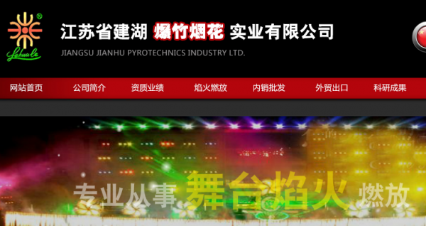 江蘇省建湖爆竹煙花實(shí)業(yè)有限公司由原建湖縣花炮工業(yè)公司(行政主管部門)和江蘇省建湖爆竹煙花實(shí)業(yè)有限公司合并 改制組建,是一家集煙花爆竹的研發(fā)、生產(chǎn)、內(nèi)銷、外貿(mào)、燃放于一體的集團(tuán)公司,擁有2個(gè)煙花研發(fā)中心、1個(gè)綜合性進(jìn)出 口公司和2個(gè)境外企業(yè)——“中巴合資樂花樂煙火工商有限公司(巴西)”、“江蘇建湖煙花(亞美尼亞)有限公司”。公司每年研發(fā)煙花新品300多個(gè),年產(chǎn)各類煙花2000多個(gè)品種50多萬箱,產(chǎn)品遠(yuǎn)銷30多個(gè)國(guó)家和地區(qū),年出口量30多萬箱, 出口產(chǎn)品質(zhì)量已連續(xù)多年名列中國(guó)各口岸前茅。大型焰火燃放是公司的品牌業(yè)務(wù)。公司精心打造了一支具有焰火晚會(huì)燃放工程設(shè)計(jì)與作業(yè)資質(zhì)的專業(yè)隊(duì)伍,裝備了 國(guó)際上先進(jìn)的音樂編程無線遙控點(diǎn)火系統(tǒng)。