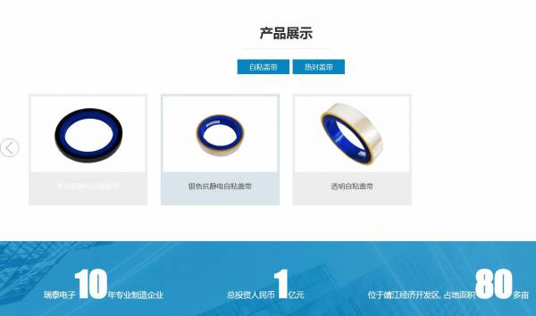 靖江瑞*電子材料有限公司/靖江瑞泰膠帶有限公司是專業(yè)制造企業(yè),總投資人民幣1億元。公司主要生產(chǎn)蓋帶(易粘、熱封)、美紋紙系列(高溫、熱熔)膠帶、其他特殊 膠帶,配套經(jīng)營載帶等。蓋帶產(chǎn)品主要應(yīng)用于貼片式LED、芯片、連接器、二極管、三極管、電容、電阻等封裝作業(yè),能配合PS、PC、PVC、PET材質(zhì)的載帶等SMT封裝。 美紋系列膠帶產(chǎn)品粘性佳、耐高溫、保持力強、不殘膠,主要用于陶瓷電容、滌綸電容、金屬化薄膜電容、鋁電解電容、二、三極管等電子元件制造過程及編帶出廠、汽車 工業(yè)烤漆與電路板焊錫遮蔽。公司產(chǎn)品性能穩(wěn)定,工藝成熟,替代進口同類產(chǎn)品,并通過權(quán)威機構(gòu)檢測,達歐盟RoHS環(huán)保標(biāo)準。 公司地處江蘇省靖江經(jīng)濟開發(fā)區(qū), 占地面 積80多畝,距京滬高速公路靖江入口處僅4KM。上海虹橋機場至我司僅需兩小時車程,上海浦東機場至我司僅需3小時車程,交通物流都很便利。 公司擁有國際先進的制膠 技術(shù)配方,并從臺灣引進了先進的智能型涂布線、程控分切設(shè)備。