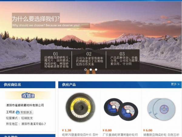 溧陽市福順*磨材料有限公司選用我司企業(yè)金屬材料行業(yè)的網(wǎng)站優(yōu)化產(chǎn)品,其SEO關(guān)鍵詞有 砂輪片,拋光片,涂附磨具,陶瓷砂輪,樹脂砂輪。其特點是用很合適的展示方式、展示效果、站點框架,把客戶及其用戶很關(guān)心的問題突出表現(xiàn);并以簡潔明朗的設(shè)計風(fēng)格,清晰展現(xiàn)公司水平實力,確保一秒抓住目標(biāo)用戶眼球,給用戶留下良好的第一印象。溧陽市福順*磨材料有限公司成立于2015年,是經(jīng)溧陽市市場監(jiān)督管理局審核的有資質(zhì)的公司,其統(tǒng)一社會信用代碼:91320481MA1M**4D9G 。公司地址:江蘇省溧陽市溧城鎮(zhèn)清溪中路6號7室。