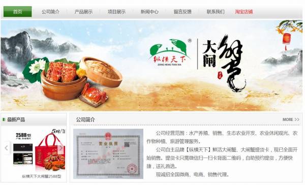 公司經營范圍:水產養(yǎng)殖、銷售、生態(tài)農業(yè)開發(fā)、農業(yè)休閑觀光、農作物種植、旅游管理服務。公司自主品牌【縱橫天下】鮮活大閘蟹、大閘蟹提貨卡,現已全面開始銷售。提貨卡只需微信掃一掃卡背面二維碼,自助預約提貨,方便快捷,送禮首選。