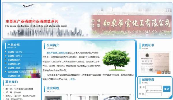 如東華*化工有限公司選用我司企業(yè)化工原料行業(yè)的網(wǎng)站優(yōu)化產(chǎn)品,其SEO關(guān)鍵詞有 亞磷酸,南通亞磷酸,如東亞磷酸,液體亞磷酸。其特點(diǎn)是用很合適的展示方式、展示效果、站點(diǎn)框架,把客戶及其用戶很關(guān)心的問題突出表現(xiàn);并以簡(jiǎn)潔明朗的設(shè)計(jì)風(fēng)格,清晰展現(xiàn)公司水平實(shí)力,確保一秒抓住目標(biāo)用戶眼球,給用戶留下良好的第一印象。如東華*化工有限公司成立于2003年,是經(jīng)如東市市場(chǎng)監(jiān)督管理局審核的有資質(zhì)的公司,其統(tǒng)一社會(huì)信用代碼:91320623752**6411N。公司地址:江蘇省如東縣豐利鎮(zhèn)。