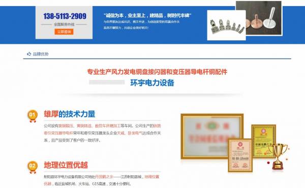 射陽縣*宇電力設(shè)備有限公司選用我司企業(yè)機械設(shè)備行業(yè)的網(wǎng)站優(yōu)化產(chǎn)品,其SEO關(guān)鍵詞有 射陽縣*宇電力設(shè)備有限公司。其特點是用很合適的展示方式、展示效果、站點框架,把客戶及其用戶很關(guān)心的問題突出表現(xiàn);并以簡潔明朗的設(shè)計風(fēng)格,清晰展現(xiàn)公司水平實力,確保一秒抓住目標用戶眼球,給用戶留下良好的第一印象。射陽縣*宇電力設(shè)備有限公司成立于2006年,是經(jīng)射陽市市場監(jiān)督管理局審核的有資質(zhì)的公司,其統(tǒng)一社會信用代碼:9132092**95357950H。公司地址:鹽城市射陽縣合德鎮(zhèn)運棉村二組68號 。