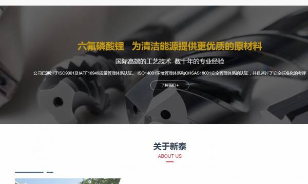 江蘇新*材料科技有限公司選用我司企業(yè)化工原料行業(yè)的網(wǎng)站優(yōu)化產(chǎn)品,其SEO關(guān)鍵詞有 江蘇新*材料科技有限公司,新泰材料,六氟磷酸鋰,氯化鈣,氟鋁酸鈉,鹽酸,氯化鈣,氟硼酸鉀,氟鋯酸鉀。其特點是用很合適的展示方式、展示效果、站點框架,把客戶及其用戶很關(guān)心的問題突出表現(xiàn);并以簡潔明朗的設(shè)計風(fēng)格,清晰展現(xiàn)公司水平實力,確保一秒抓住目標(biāo)用戶眼球,給用戶留下良好的第一印象。江蘇新*材料科技有限公司成立于2011年,是經(jīng)蘇州市市場監(jiān)督管理局審核的有資質(zhì)的公司,其統(tǒng)一社會信用代碼:9132050058**94366M。公司地址:江蘇省常熟市新材料產(chǎn)業(yè)園海豐路88號。