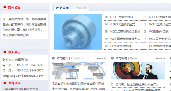 我們公司與江蘇省揚(yáng)中市金星聯(lián)軸器制造有限公司合作中,對(duì)這個(gè)公司所經(jīng)營(yíng)的自動(dòng)化設(shè)備這個(gè)行業(yè)提供了網(wǎng)站開發(fā),與該公司的合作,更多的客戶讓我們公司為其提供網(wǎng)站開發(fā),通過每一次合作,我們公司不斷完善自己,同時(shí)希望合作伙伴在經(jīng)營(yíng)的路上越來越好。