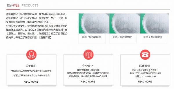 海鹽睿*化工科技有限公司選用我司企業(yè)化工原料行業(yè)的網(wǎng)站優(yōu)化產(chǎn)品,其SEO關(guān)鍵詞有 嘉興污水絮凝劑,嘉興污水處理廠,嘉興聚丙烯酰胺廠家,海鹽污水絮凝劑,海鹽污水處理廠,造紙化學(xué)品廠家,礦山凈水劑,洗沙凈水劑。其特點(diǎn)是用很合適的展示方式、展示效果、站點(diǎn)框架,把客戶及其用戶很關(guān)心的問(wèn)題突出表現(xiàn);并以簡(jiǎn)潔明朗的設(shè)計(jì)風(fēng)格,清晰展現(xiàn)公司水平實(shí)力,確保一秒抓住目標(biāo)用戶眼球,給用戶留下良好的第一印象。海鹽睿*化工科技有限公司成立于2012年,是經(jīng)海鹽市市場(chǎng)監(jiān)督管理局審核的有資質(zhì)的公司,其統(tǒng)一社會(huì)信用代碼:91330424**289801X8。公司地址:浙江省海鹽縣大橋新區(qū)。