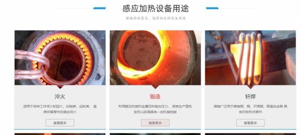 目前已研制一系列高頻、中頻、超音頻、超高頻感應(yīng)加熱電源。以及高頻淬火機(jī)床,中頻熔煉,中頻鍛造爐,超音頻退炎機(jī),超音頻鍛造爐,釬焊機(jī),塑焊機(jī),熱彎?rùn)C(jī)等多種專業(yè)設(shè)備,廣泛應(yīng)用在金屬加工、五金塑料、汽車、摩托車、家電、水暖、潔具、制冷、通信、醫(yī)療器材、兵器工業(yè)等需熱源設(shè)備的行業(yè)之退火、淬火、焊接、透熱成型、熱配合等工藝。