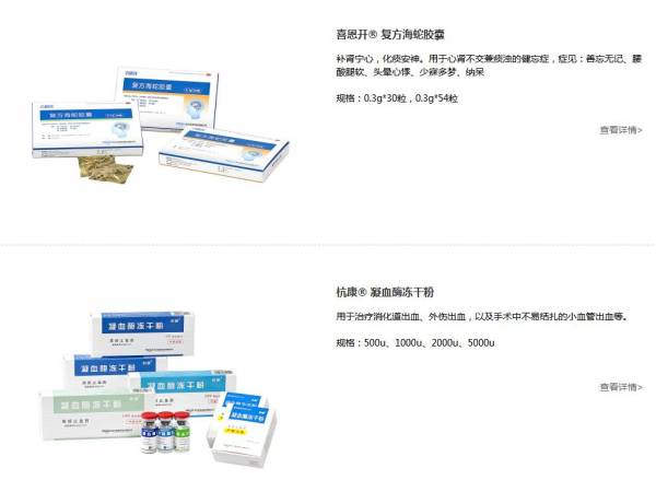 公司現(xiàn)擁有神經(jīng)系統(tǒng)用藥、止血用藥、抗感染用藥等藥品批準文號共30余個,其中:喜恩開牌“復(fù)方海蛇膠囊”系國內(nèi)首只海洋生物促智藥,國家中藥獨家保護品種,榮獲國家重點新產(chǎn)品,同時被列入國家高技術(shù)產(chǎn)業(yè)化示范工程項目;其他產(chǎn)品如“凝血酶凍干粉”、“濃替硝唑含漱液”等均列入國家醫(yī)保目錄,在國內(nèi)同類產(chǎn)品中具有較高的知名度和認知度。