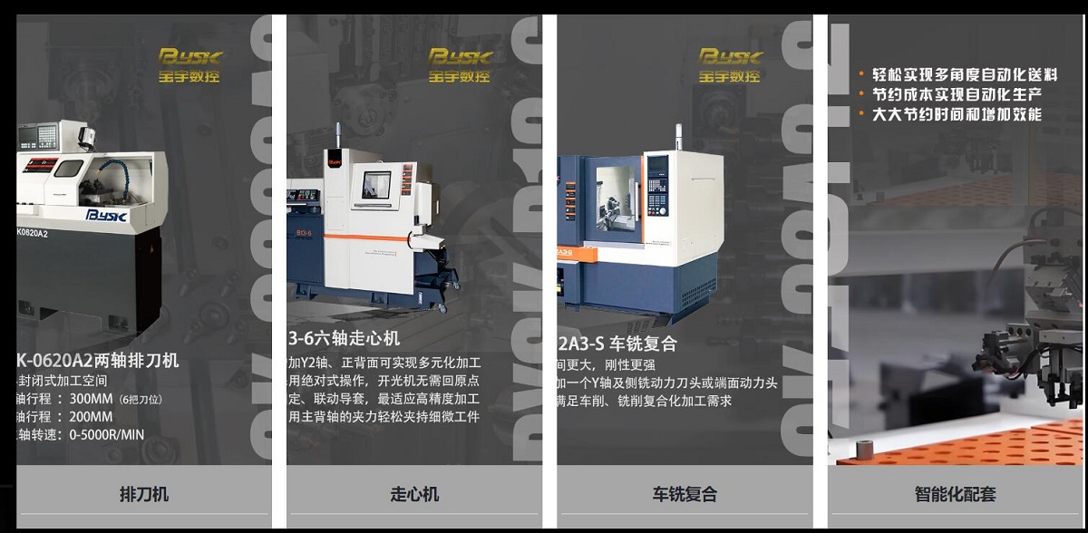 公司專業(yè)生產(chǎn)數(shù)控走心機(jī)、排刀式數(shù)控車床和車銑復(fù)合中心、車銑復(fù)合機(jī)床、自動化雙主軸車床等產(chǎn)品。