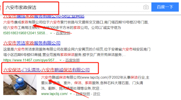 六安市鵬誠保潔有限公司選用我司企業(yè)家政保潔的網(wǎng)站優(yōu)化產(chǎn)品,其SEO關(guān)鍵詞有家政保潔。搜索品牌詞,首頁至少霸占5條,通過營銷型網(wǎng)站、媒體文章、口碑等方式,達(dá)到全方位霸屏,全面展示企業(yè)實(shí)力。六安市鵬誠保潔有限公司成立于2002年,是經(jīng)六安市市場監(jiān)督管理局審核的有資質(zhì)的公司,其統(tǒng)一社會(huì)信用代碼:91341500MA2RLA2G0D。公司地址:安徽省六安市恒遠(yuǎn)皋城公館14棟303室。