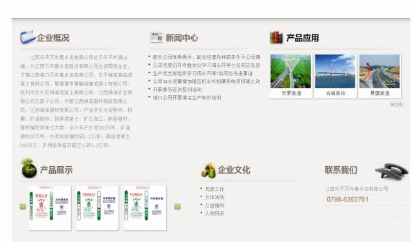 江西樂平*年青水泥有限公司網(wǎng)站建設(shè)營銷型案例作品
