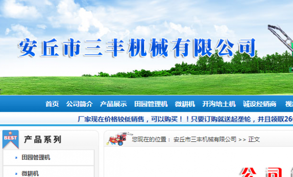 安丘市三豐農(nóng)機(jī)制造有限公司與本司簽約網(wǎng)頁開發(fā)項(xiàng)目