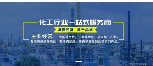 公司主要經(jīng)營化工產(chǎn)品包括二硫氰基甲烷,二氯丙烯胺,馬來酸二乙酯,聚烯丙基胺鹽酸鹽,聚烯丙基胺,烯丙基胺鹽酸鹽等系列產(chǎn)品。 公司秉承“質(zhì)量、客戶至上、誠實守信、互惠互利”的經(jīng)營理念,產(chǎn)品質(zhì)量及售后服務(wù)受到國內(nèi)外客戶的一致好評。