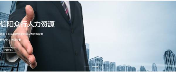 信陽(yáng)市眾*人力資源服務(wù)有限公司選用我司企業(yè)人力資源行業(yè)的網(wǎng)站優(yōu)化產(chǎn)品,其SEO關(guān)鍵詞有 信陽(yáng)人力資源,信陽(yáng)人才招聘,信陽(yáng)眾行人力資源,信陽(yáng)共享人力資源。其特點(diǎn)是用很合適的展示方式、展示效果、站點(diǎn)框架,把客戶及其用戶很關(guān)心的問(wèn)題突出表現(xiàn);并以簡(jiǎn)潔明朗的設(shè)計(jì)風(fēng)格,清晰展現(xiàn)公司水平實(shí)力,確保一秒抓住目標(biāo)用戶眼球,給用戶留下良好的第一印象。信陽(yáng)市眾*人力資源服務(wù)有限公司成立于2017年,是經(jīng)西安市市場(chǎng)監(jiān)督管理局審核的有資質(zhì)的公司,其統(tǒng)一社會(huì)信用代碼:91411500MA4**T4G2H。公司地址:信陽(yáng)市八一路金源大廈11樓1102室。