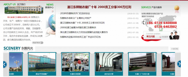 潛江東*制衣有限公司選用我司企業(yè)服飾服裝行業(yè)的網(wǎng)站優(yōu)化產(chǎn)品,其SEO關(guān)鍵詞有 潛江東*制衣有限公司,東*制衣廠,東*服裝廠,東*。其特點(diǎn)是用很合適的展示方式、展示效果、站點(diǎn)框架,把客戶及其用戶很關(guān)心的問題突出表現(xiàn);并以簡潔明朗的設(shè)計(jì)風(fēng)格,清晰展現(xiàn)公司水平實(shí)力,確保一秒抓住目標(biāo)用戶眼球,給用戶留下良好的第一印象。潛江東*制衣有限公司成立于2004年,是經(jīng)潛江市市場(chǎng)監(jiān)督管理局審核的有資質(zhì)的公司,其統(tǒng)一社會(huì)信用代碼:9142900578092**8XY。公司地址:湖北省潛江市章華南路(高速公路下立交橋即到)。
